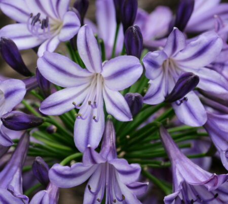 - Agapanthus are clump-forming perennials with narrowly strap-shaped leaves, evergreen in some species, and erect stems bearing umbels of funnel-shaped blue or white flowers