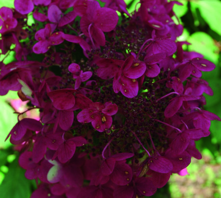 A deciduous shrub growing to 2m tall, with toothed green leaves. Strong, branching, red-tinted stems carry 30cm long, cone-shaped flower clusters from spring into autumn.
